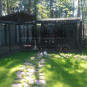Изначально планировалось сделать работы по устройству посевного «теневого» газона, сорт GreenParkShadowLawn. В процессе добавилась система автоматического полива, спортивная площадка, тропинки из натурального камня, декоративные деревья и кустарники.