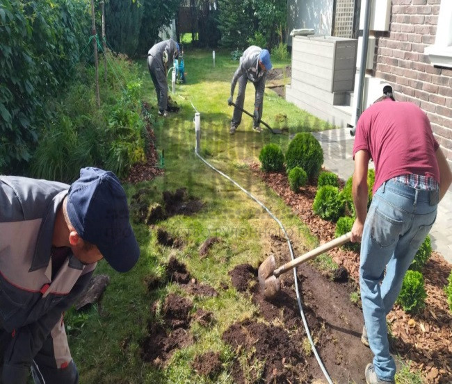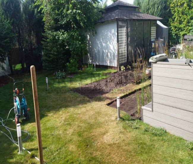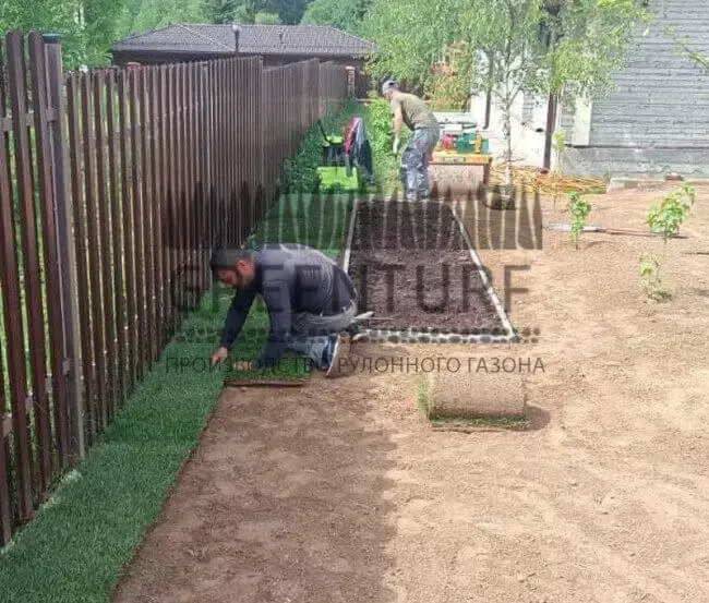 В стоимость услуги не входит подготовка основания. Перед началом монтажных работ клиент своими силами очищает участок от сорняков, мусора, корней, камней, укладывает дренаж, покрывает его слоем почвы.